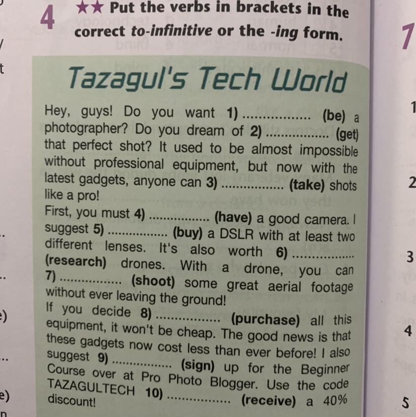 to be, getting,take,have, buying, researching,shoot,to purchase,signing up,to receive