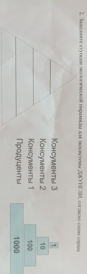 заполните ступени экологической пирамиды для экосистемы Джунгли, согласно схеме справа помоги пж