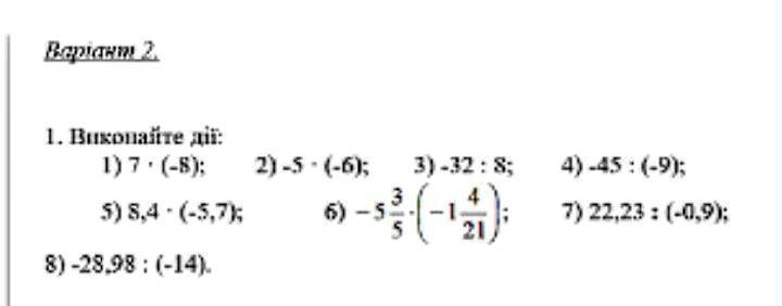 5) 8,4 * (-5,7) = 84 * -57 = 4788, в двух числах запятая была после 1 цифры, теперь 1+1 = 2, 2 запятые, т.е. 47,88