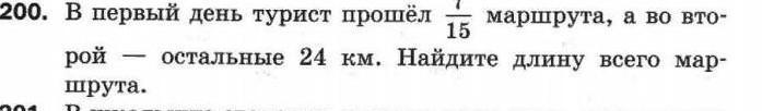 200. В первый день турист прошёл маршрута, а во вто- 15 остальные 24 км. Найдите длину всего мар- рой шрута. -