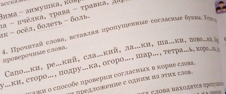Прочитай слова, выставляя пропущенные согласные буквы. Устно подбери проверочные слова.