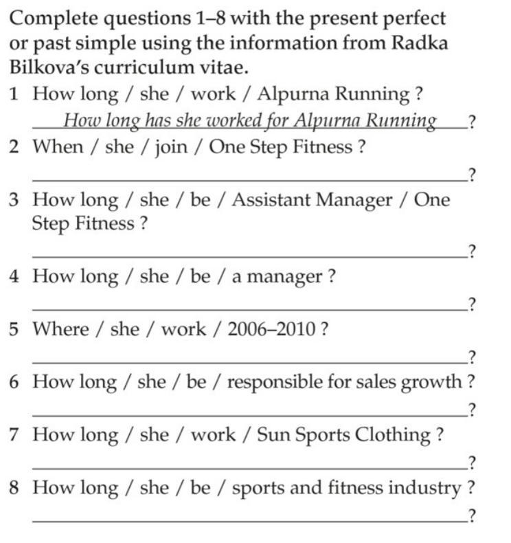 Present Perfect: has / have + глагол 3 формы (1, 3, 4, 6, 7, 8)