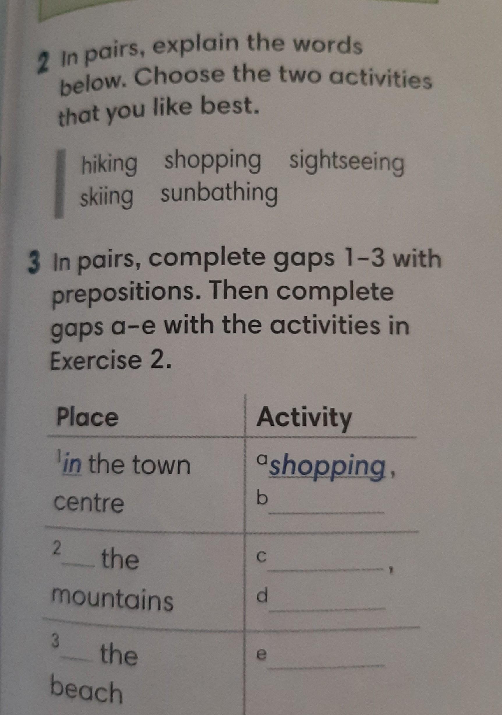 2. IN…; C. skiing; D. Hiking