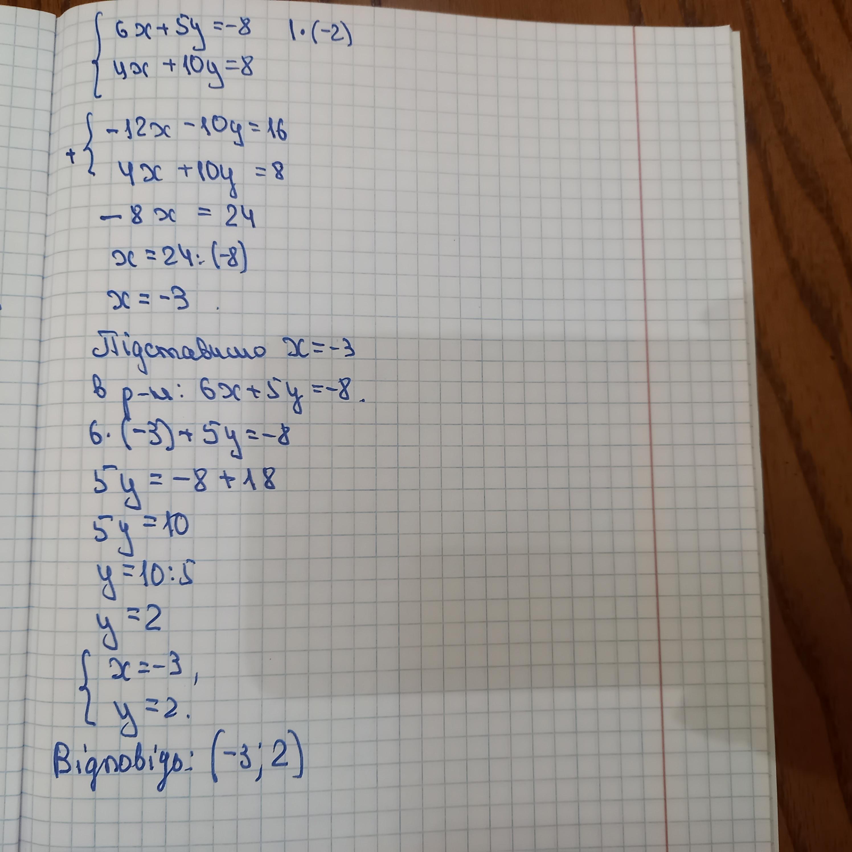 (6х + 5у = -8,