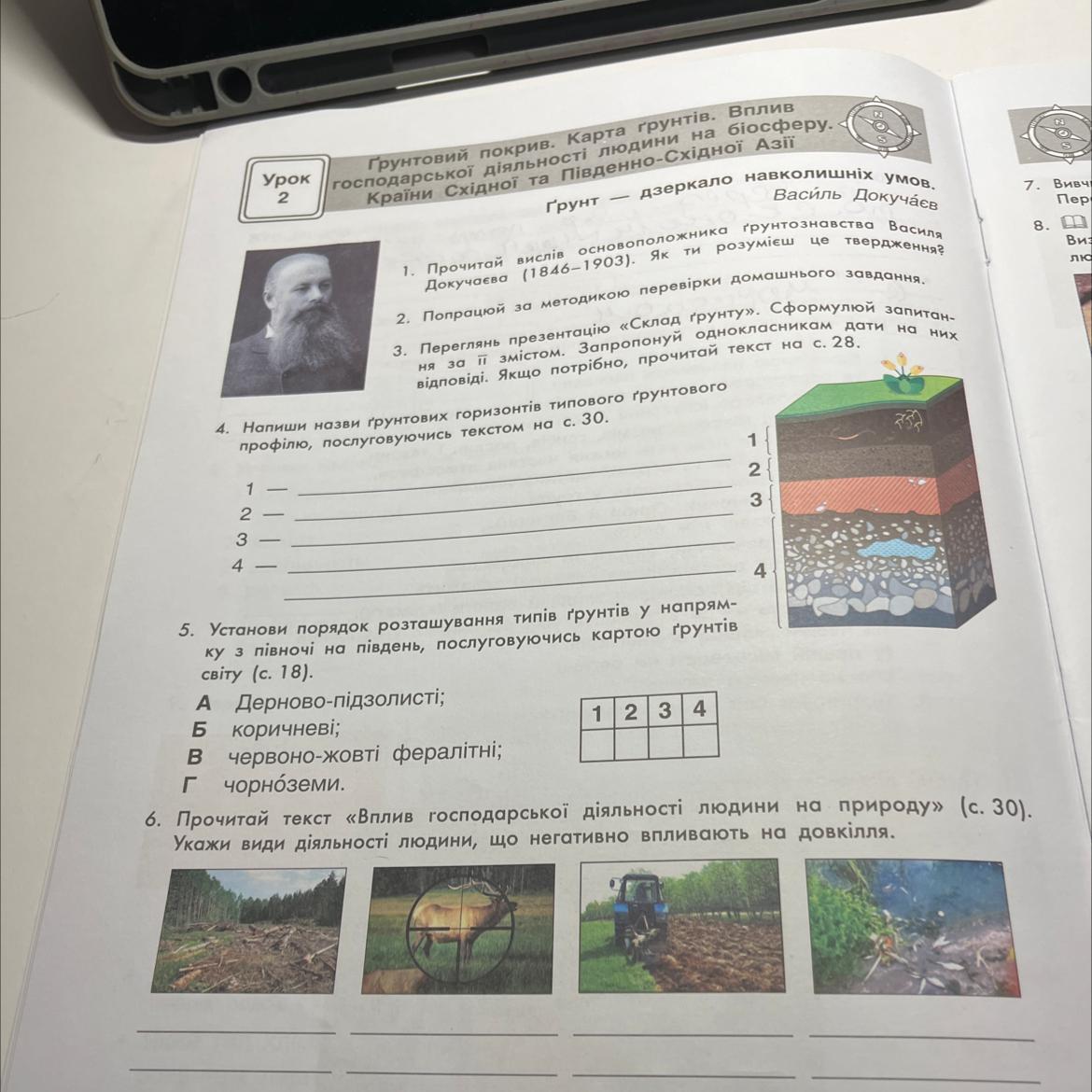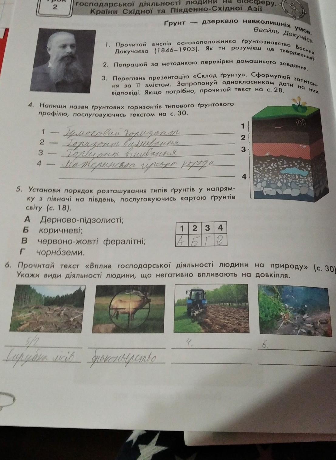 5. Установи порядок розташування типів ґрунтів у напрям-