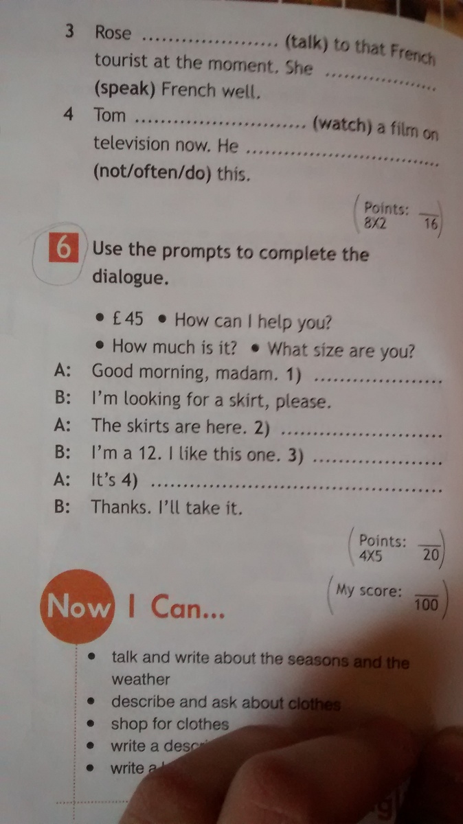 1) How can I help you? 2)What size are you? 3)How much is it? 4) £45