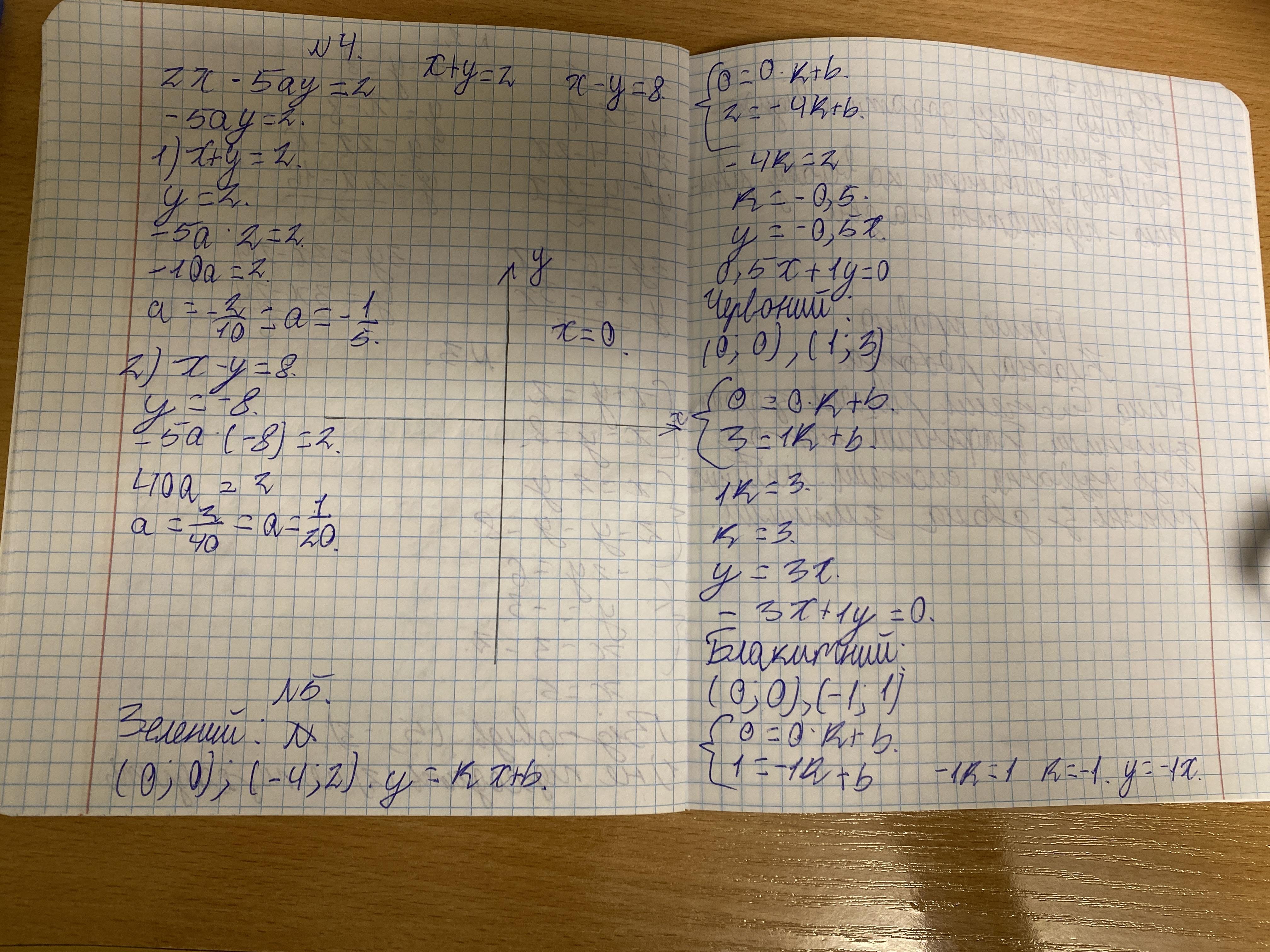 4. При якому значенні a точка перетину кожної прямої з п. 1 і прямої 2x - 5ay = 2 належить осі ординат.