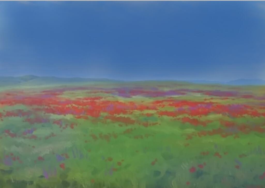 Соответствует описанию: степи, мак, ночь, высокая трава.