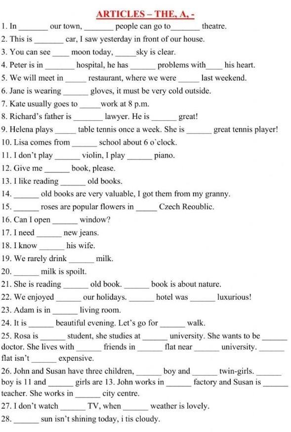 26) John and Susan three children, a boy and a twin-girls. A boy is 11 and a girls are 13. John works in a factory and Susan is a teacher. She works in the city centre.