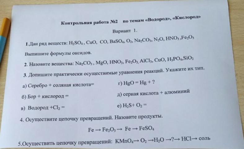 1. Оксиды: CuO, CO, BaSO4, FeO, O2, SiO2.