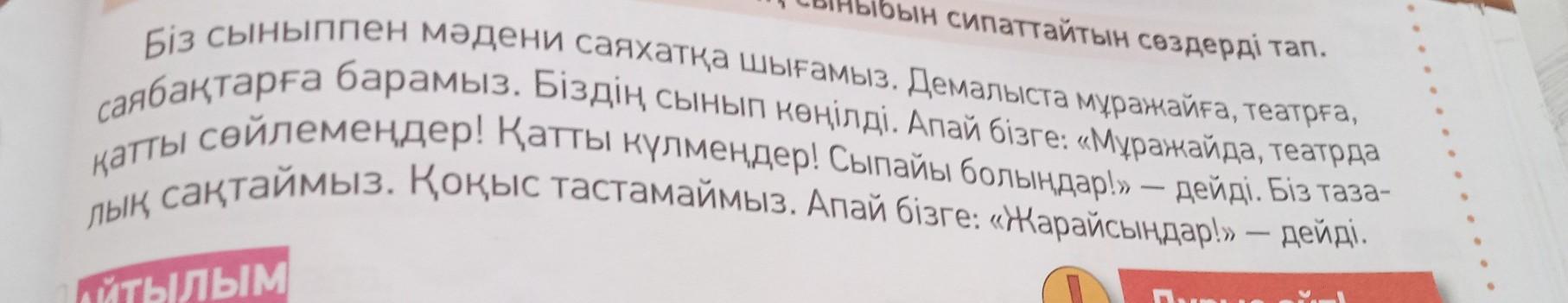 ОҚЫЛЫМ ЖАЗЫЛЫМ 7-тапсырма. Мәтiндi окы. Сыпайылык ережесін тап. Дәптерге жаз. 1. ... 2....