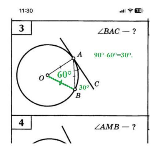 ∠ВАС = ∠ОАС-∠ОАВ = 90°-60°=30°.