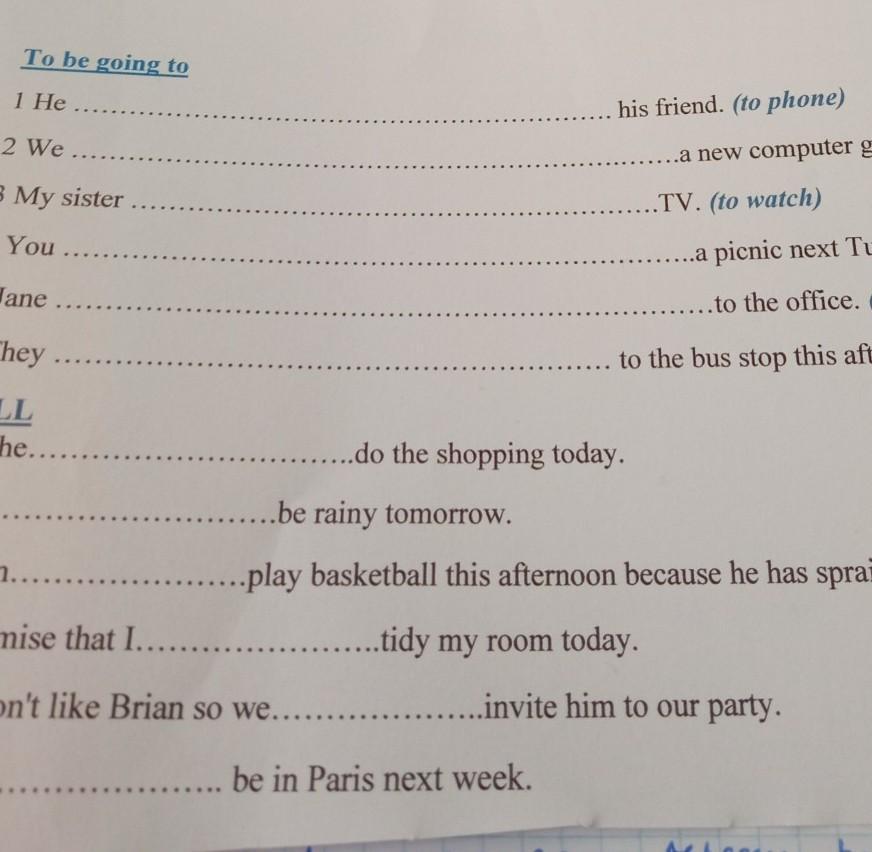 He is going to, we are going to, my sister is going, you are going to, Jane is going to, they are going to. Выписывайте глаголы из скобок бе частицы to, т.к. в обороте уже есть эта