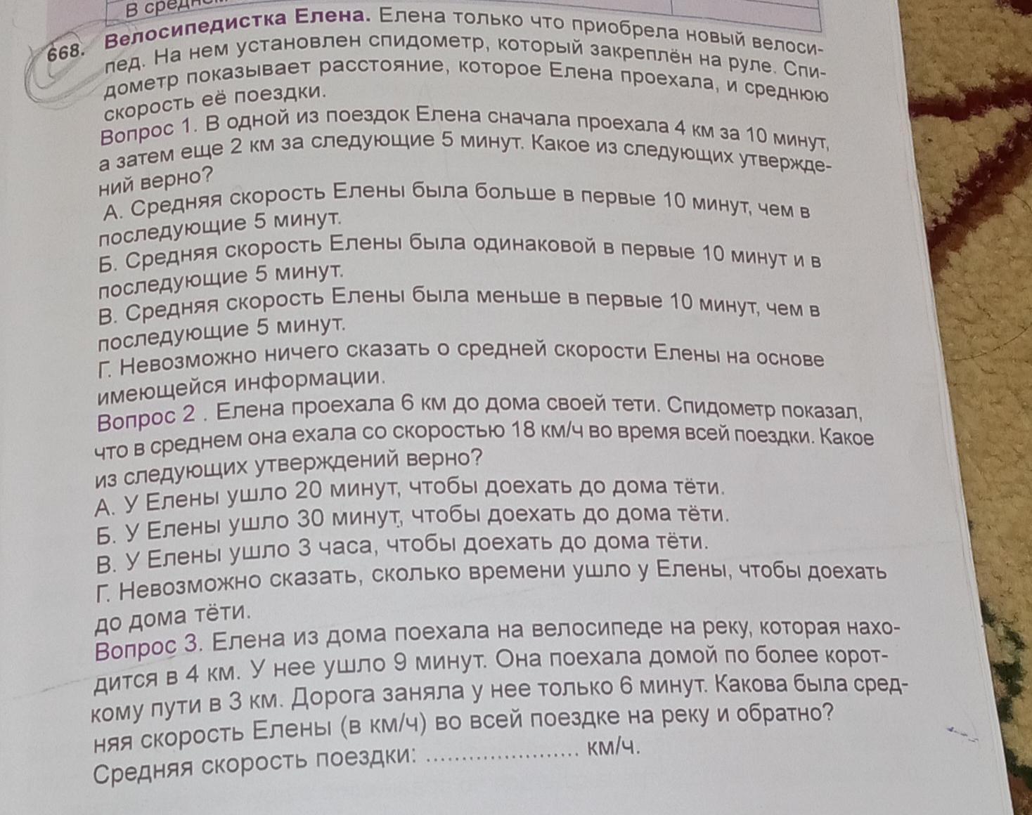 Средняя скорость v ср = S общ / t общ = 7 км / 0,25 ч = 28 км/ч (средняя скорость всей поездки)