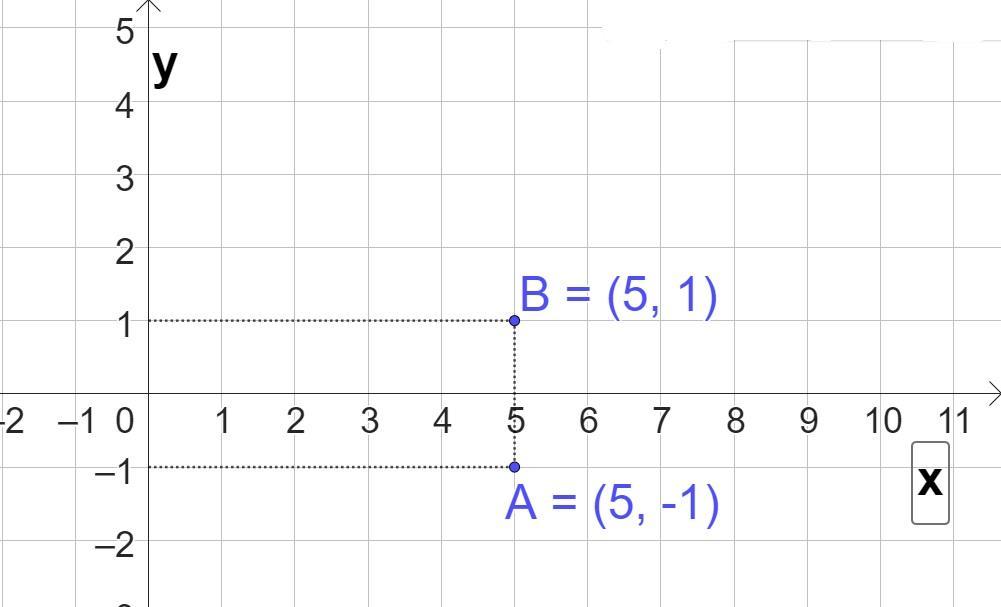Тобто абсциса точки А дорівнює абсцисі точки В: а=5.