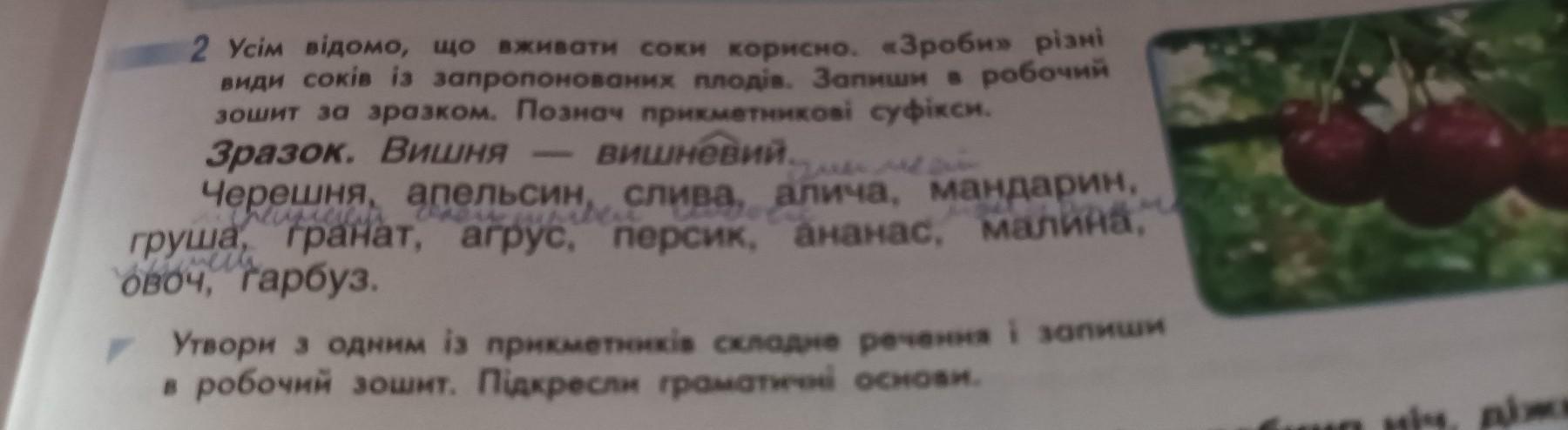 Утвори з одним із прикметників складне речення і запи В робочий зошит. Підкресли граматичні основи.