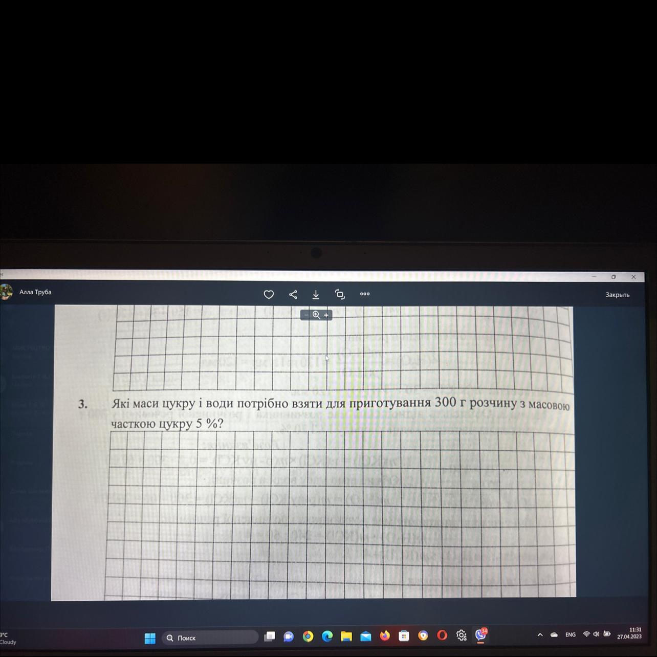 3. Які маси цукру і води потрібно взяти для приготування 300 г розчину з масовою