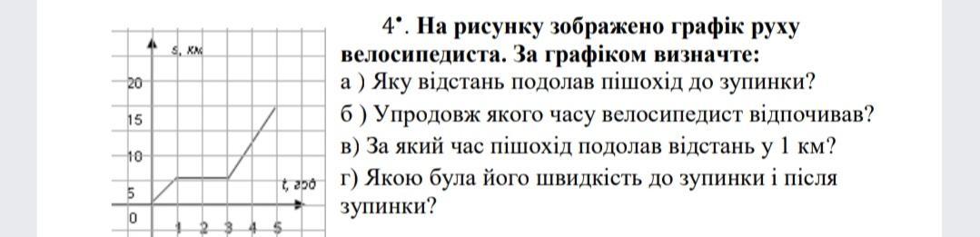 г) до зупинки 5 км/год, після зупинки також 5 км/год