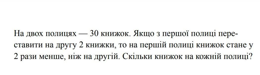 Если с 1 полки на 2 переставить две книги, то на первой будет в 2 раза меньше чем на второй полке