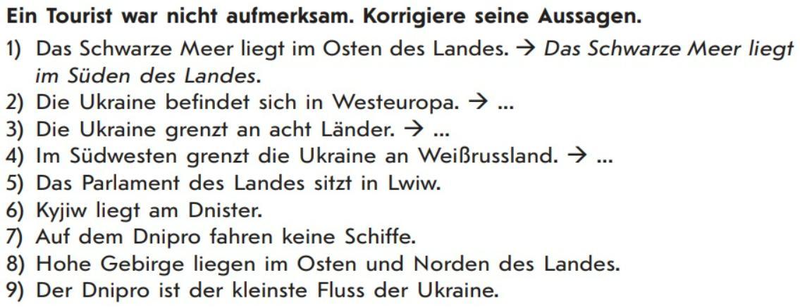 2) Die Ukraine befindet sich in Westeuropa. → ...