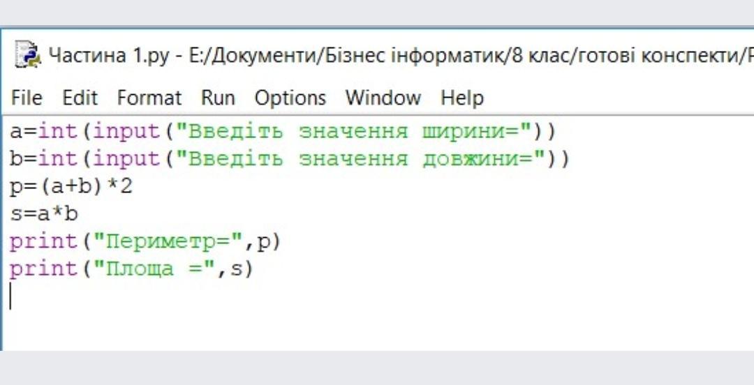 Використовуючи зразок запишіть код програми яка могла б рахувати довжину кола та його площу.