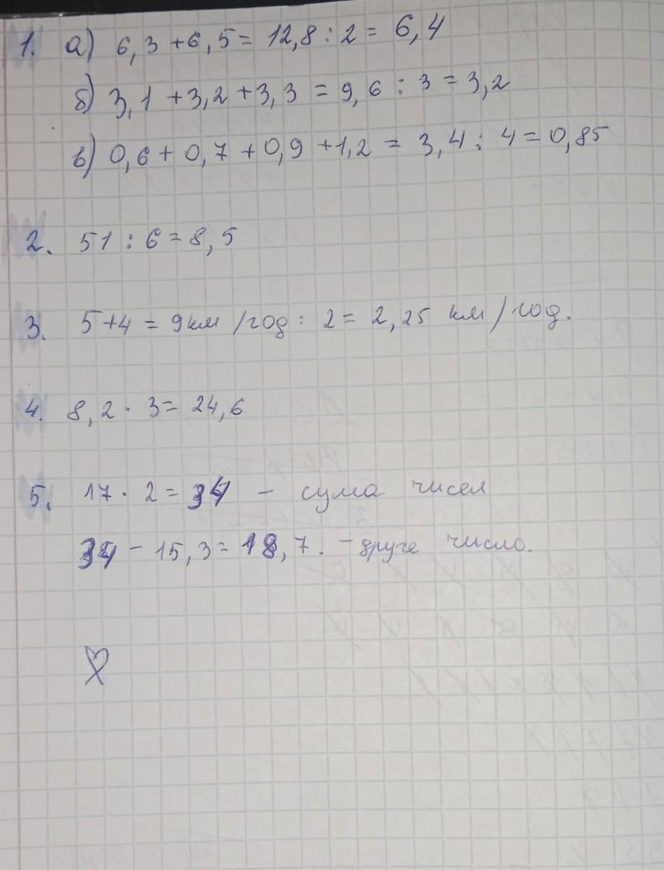 №5  Середнє арифметичне двох чисел дорівнює 17. Одне з цих чисел дорівнює 15,3. Знайдіть друге число.