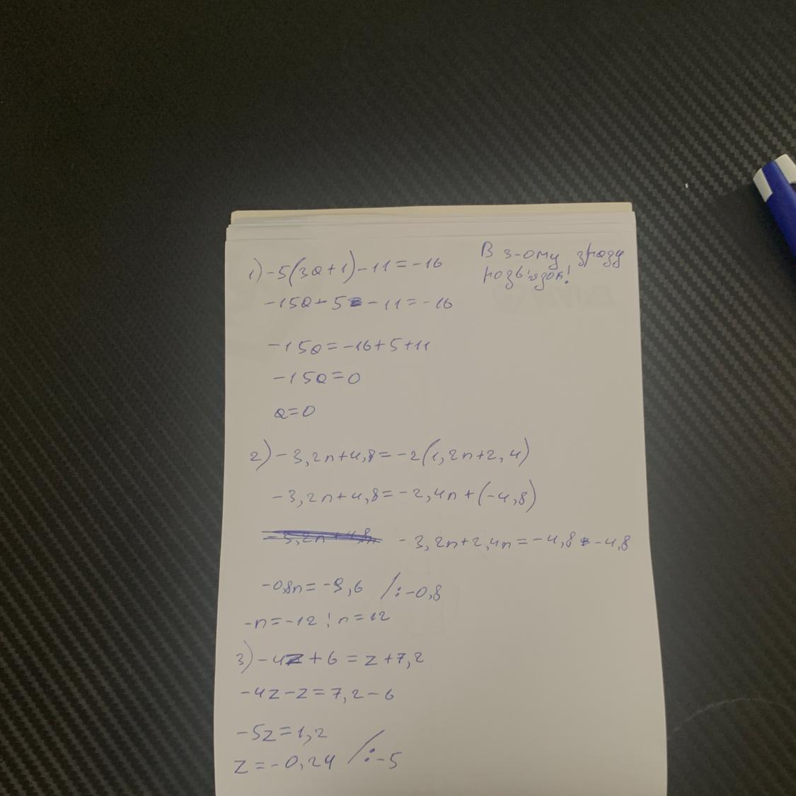 м) -5•(0,8z-1,2)=-z+7,2; -4+6=-z+7,2; z=5,2