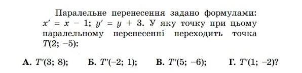 { y' = - 5 + 3 ; { y' = - 2 . Отже , T( 2 ; - 5 ) ----> T' ( 1 ;- 2).