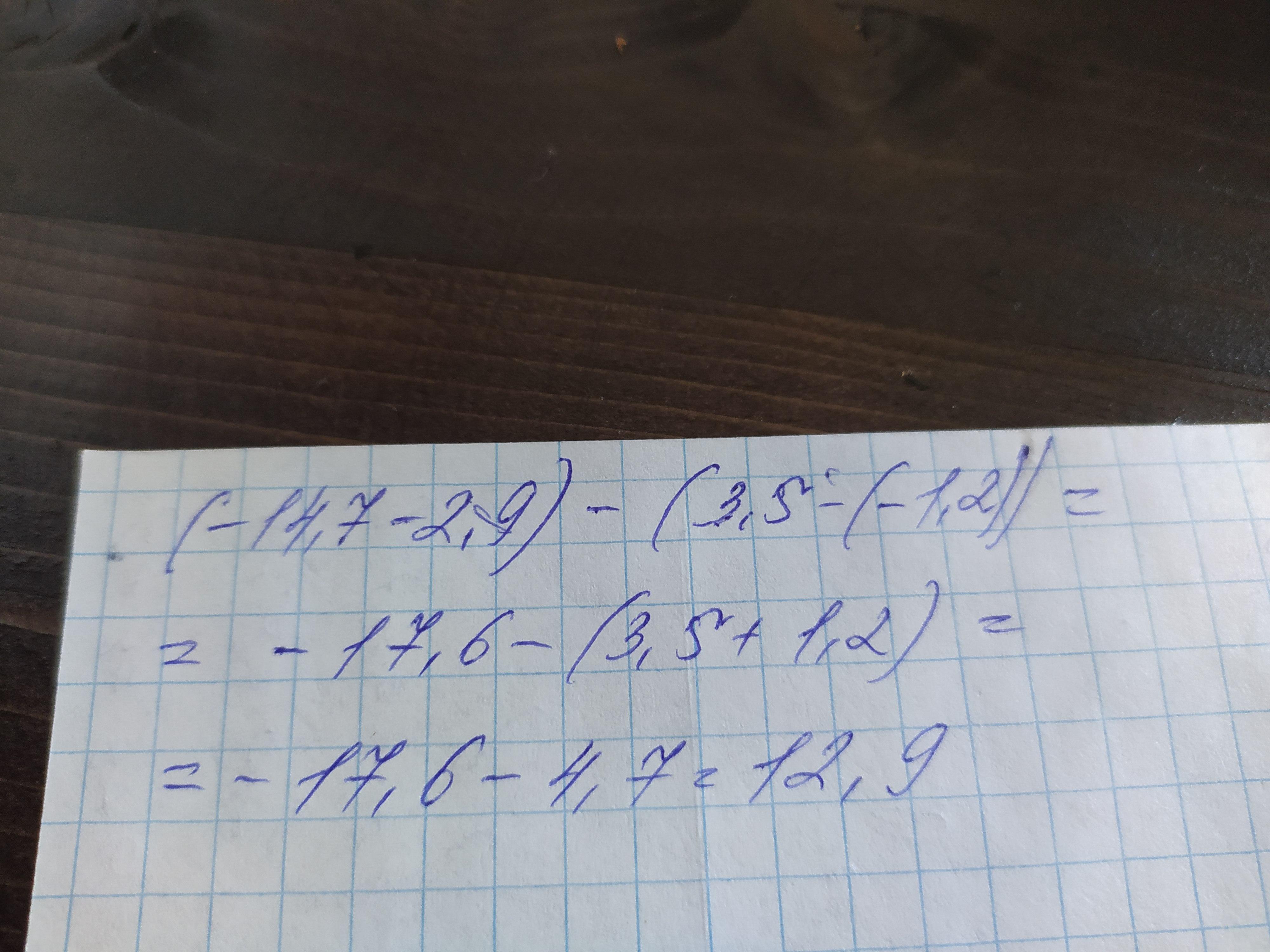 від різниці -14,7 і 2,9 відніміть різницю чисел 3,5 і -1,2