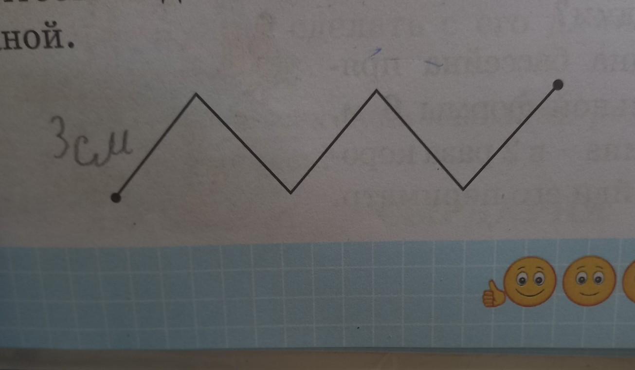 9. Начерти ломаную с двумя равными звеньями так, чтобы еë длина была такой же, как у данной ломаной. / 3 см.
