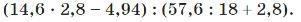 Короче вот ответ просто чела удалили когда он написал ответ (14,6*2,8-4,94):(57,6:18+2,8=5,99