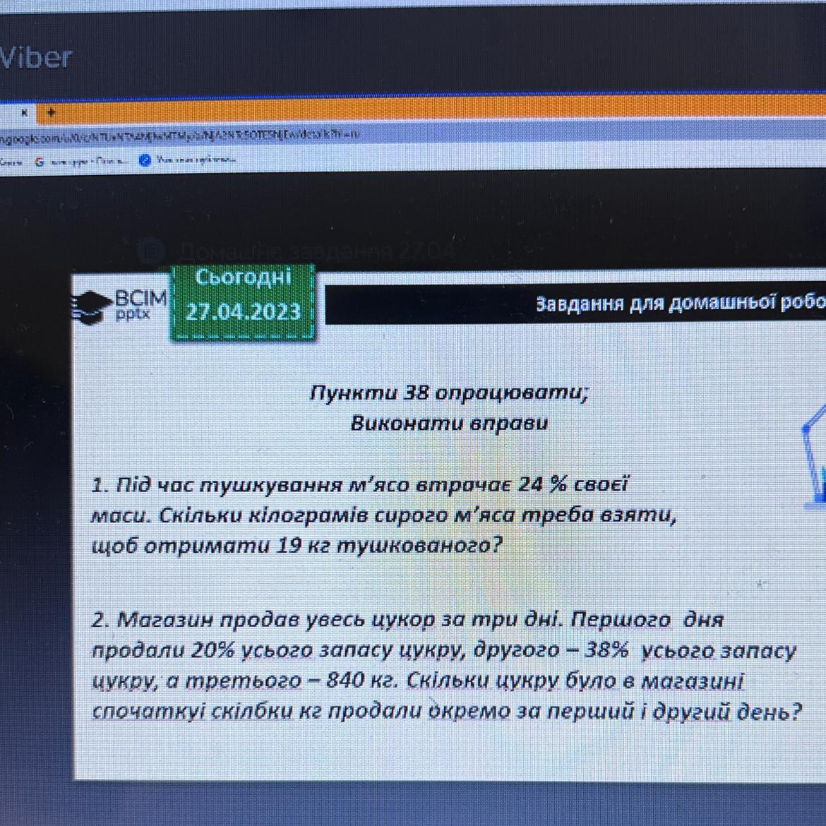1. Нехай x - маса сирого м'яса, тоді після тушкування залишиться 76% від початкової маси:
