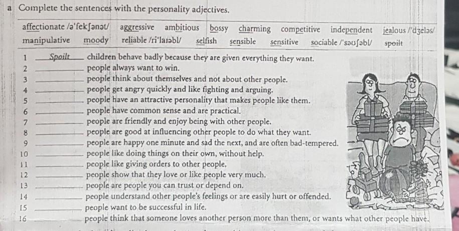 1. Spoilt 2. Competitive 3. Selfish 4. Aggressive 5. Charming 6. Sensible 7. Sociable 8. Manipulative 9. Moody 10. Independent 11. Bossy 12. Affectionate 13. Reliable 14. Sensitive 15. Ambitious 16. Jealous