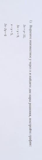 1)выразите неизвестное у через х и найдите две пары решения,постройте график: