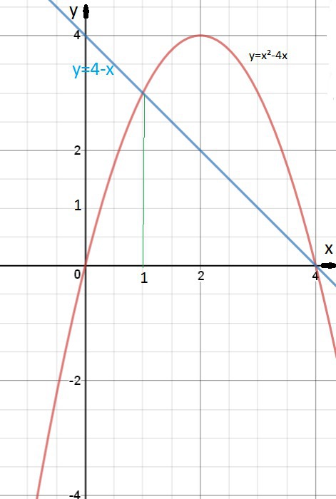 у=4х-х²- парабола, ветви которой направлены вверх, точки пересечения с осью Ох: