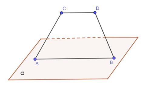 Основа АВ трапеції АВСD належить площині α, а основа CD не належить цій площині. Як розміщена пряма CD відносно площини α?