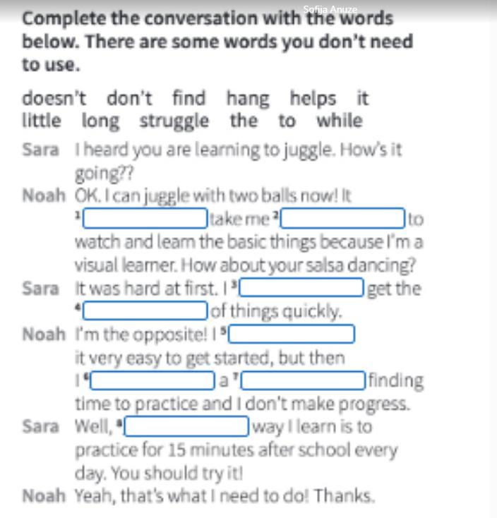 1.dosn't 2.long 3.don't 4. while 5. sruggle 6.hang 7.to 8.little
