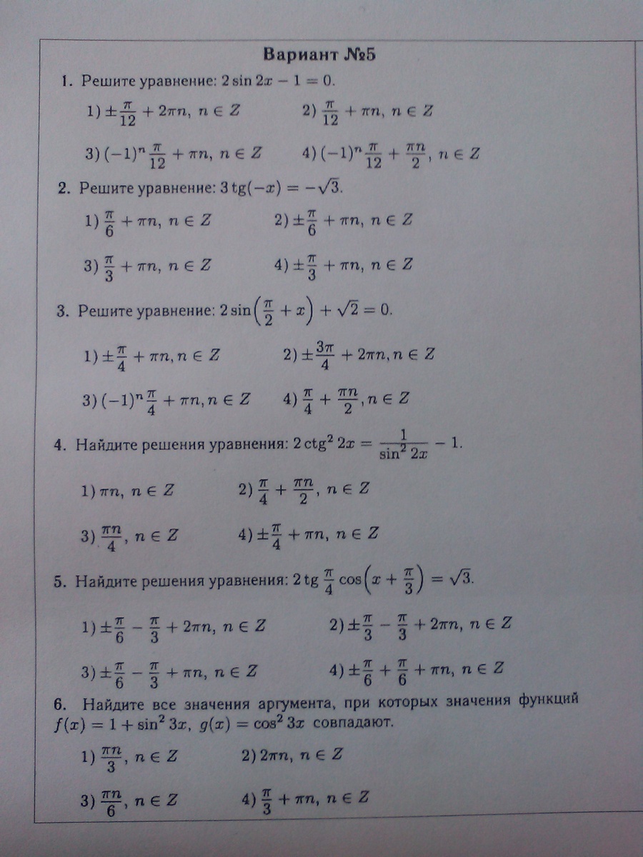 2) также переписать в виде tg x = √3/3, далее формула, х=arctg пи/6 +пи ·n, а потом опять переписываем ответ 1