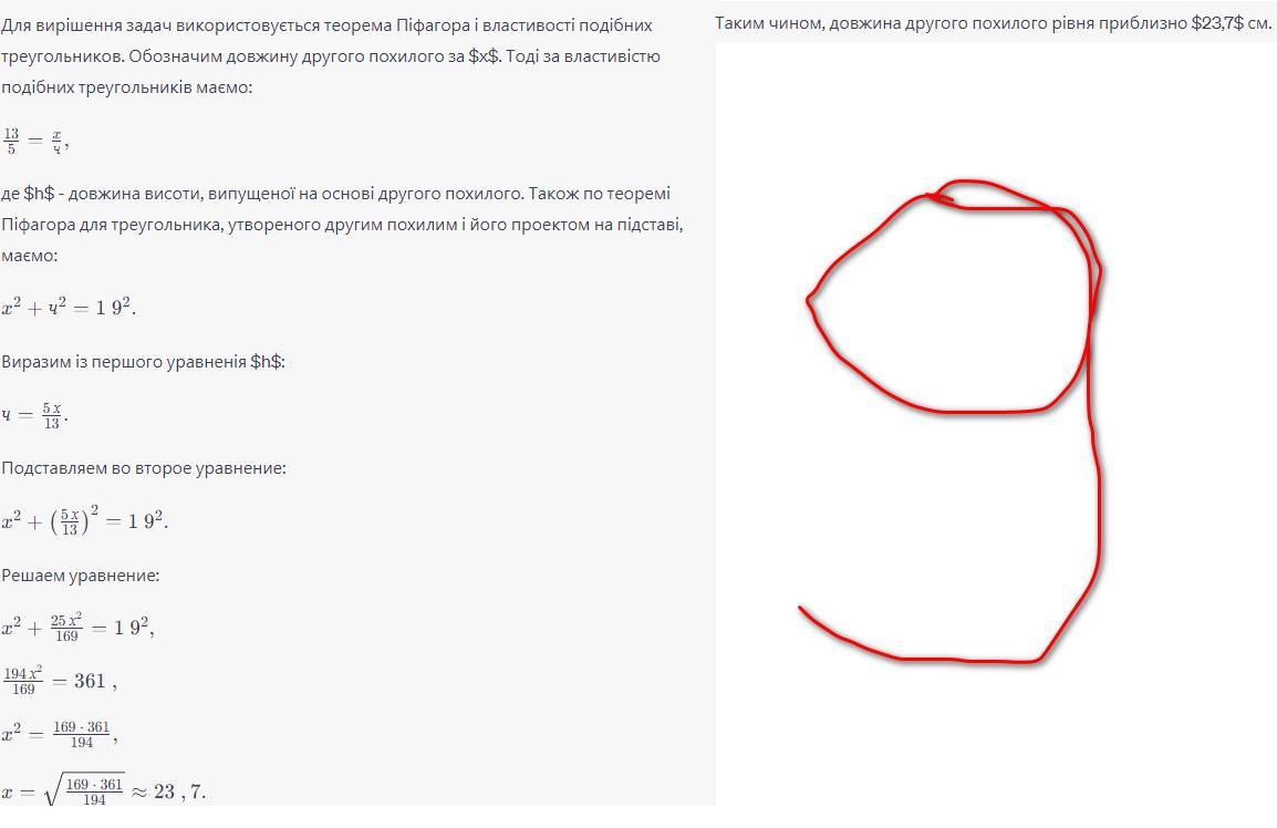 Таким чином, довжина гіпотенузи АВ рівна приблизно 8,49.