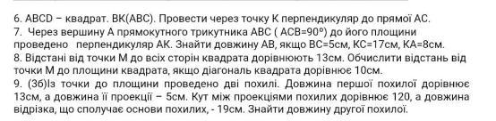 6.Щоб провести перпендикуляр до прямої АС через точку К, потрібно знайти середину відрізка АС і з’єднати її з точкою К. Так як АВС - квадрат, то АС - це одна з його діагоналей, а значить, вона проходить через центр квадрата. Тому середина отрезка АС складається з центром квадрата.