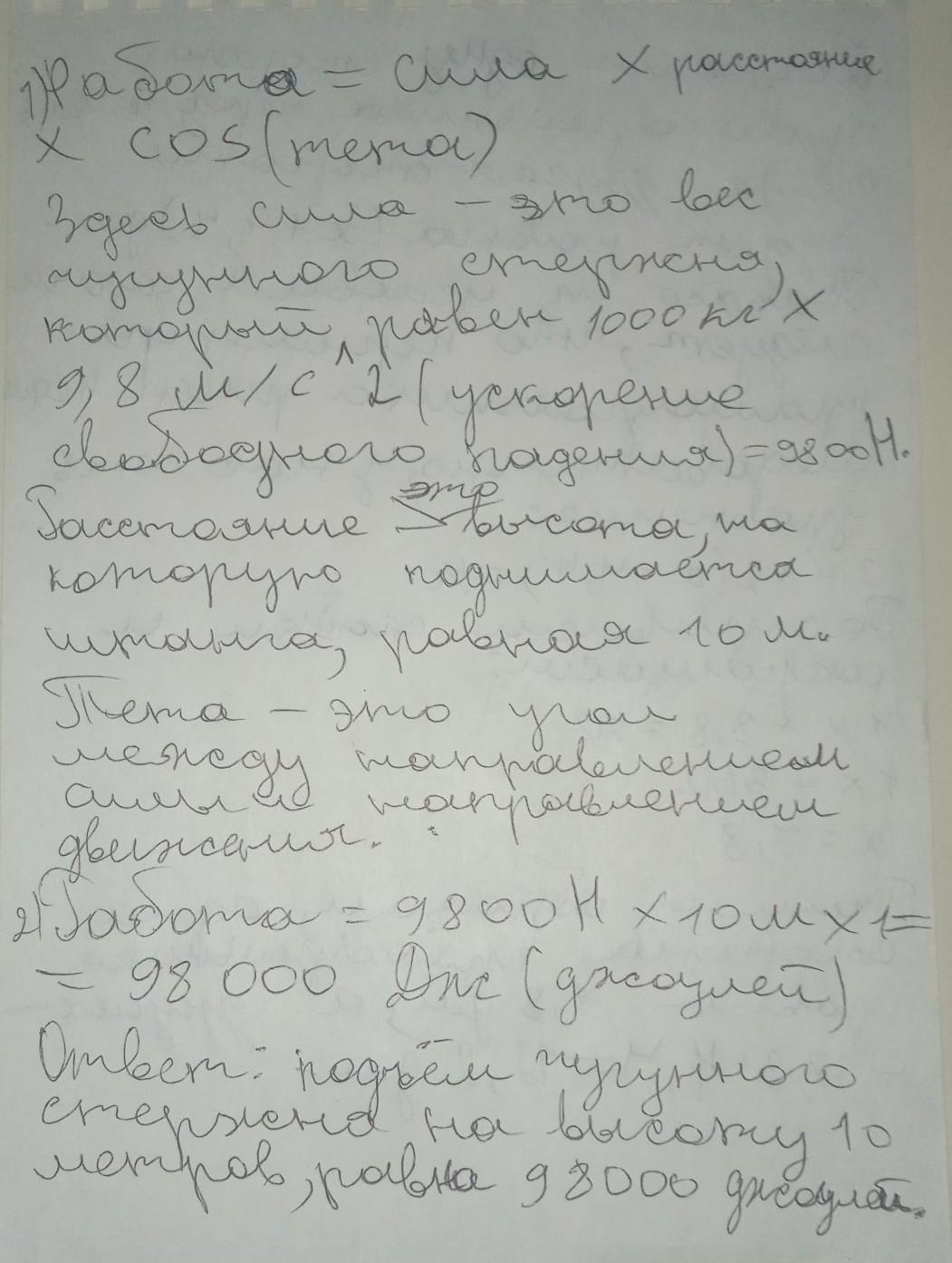 Какая работа совершается при подъеме чугунного бруска с размерами 1м, 20см и 50 см на высоту 10м. Сделайте чертёж.