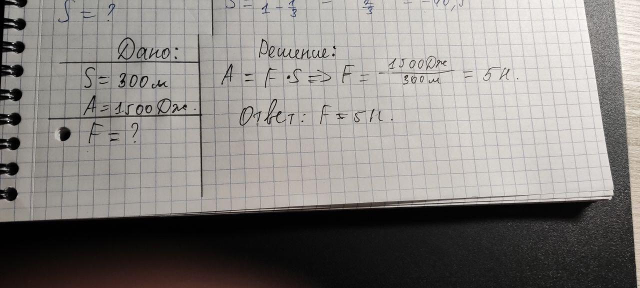 На шляху 300 м була здійснена робота по переміщенню 1500 Дж. Знайдіть величину сили, яка викликала таке переміщення.