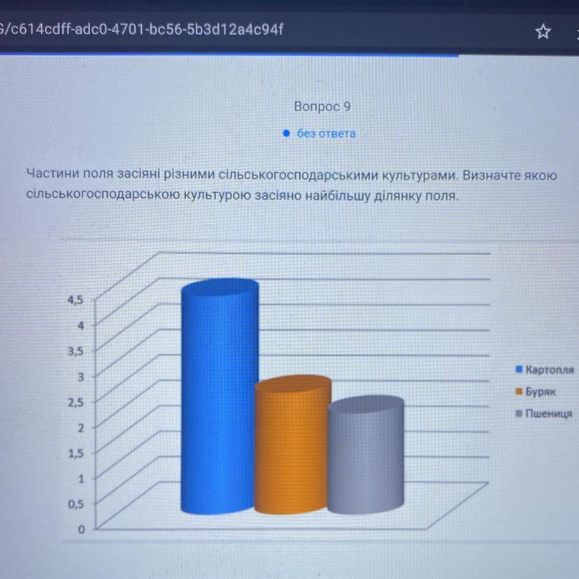 Так как синий столбик выше всех остальных, значит наибольший участок поля занимает картофель.