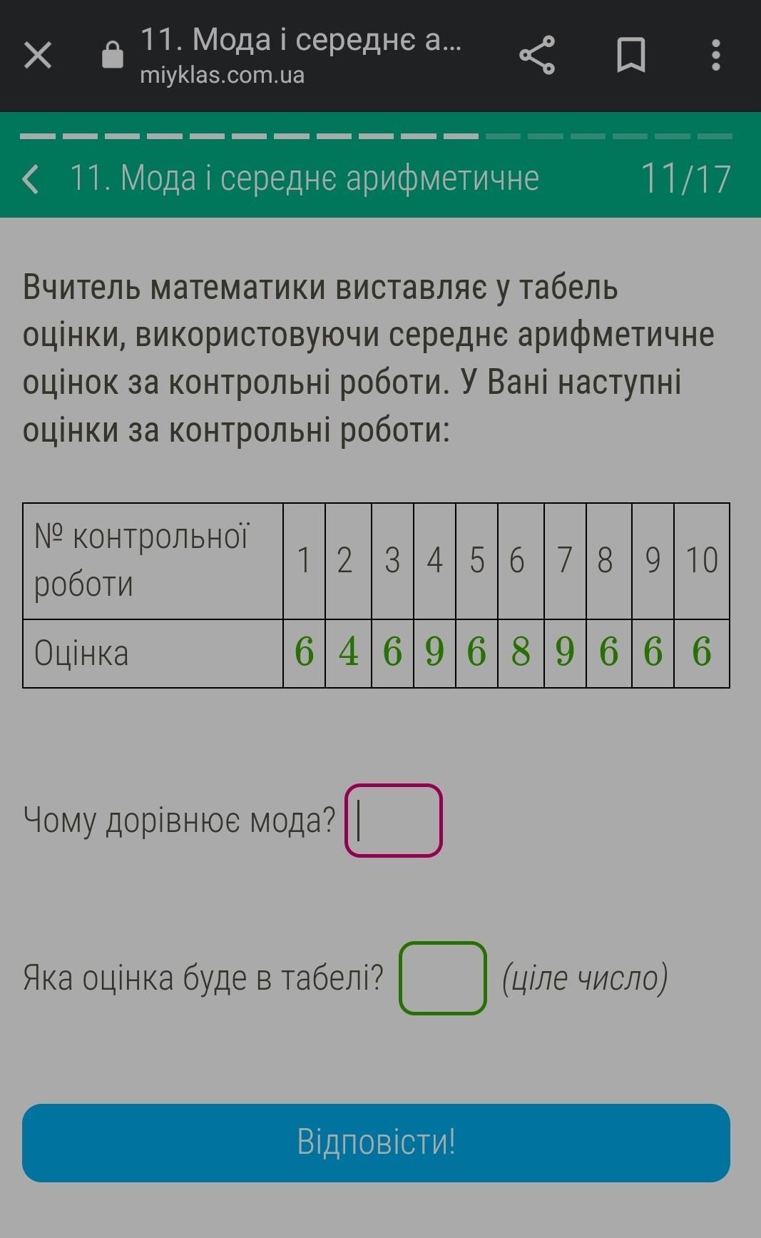 Мода = 6, а оцінка в табелі - 7 (якщо округлена)