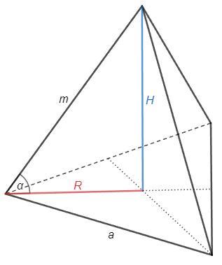 Боковое ребро правильной треугольной пирамиды равно m, и составляет с плоскостью основания угол альфа градусов. Найдите объем пирамиды.