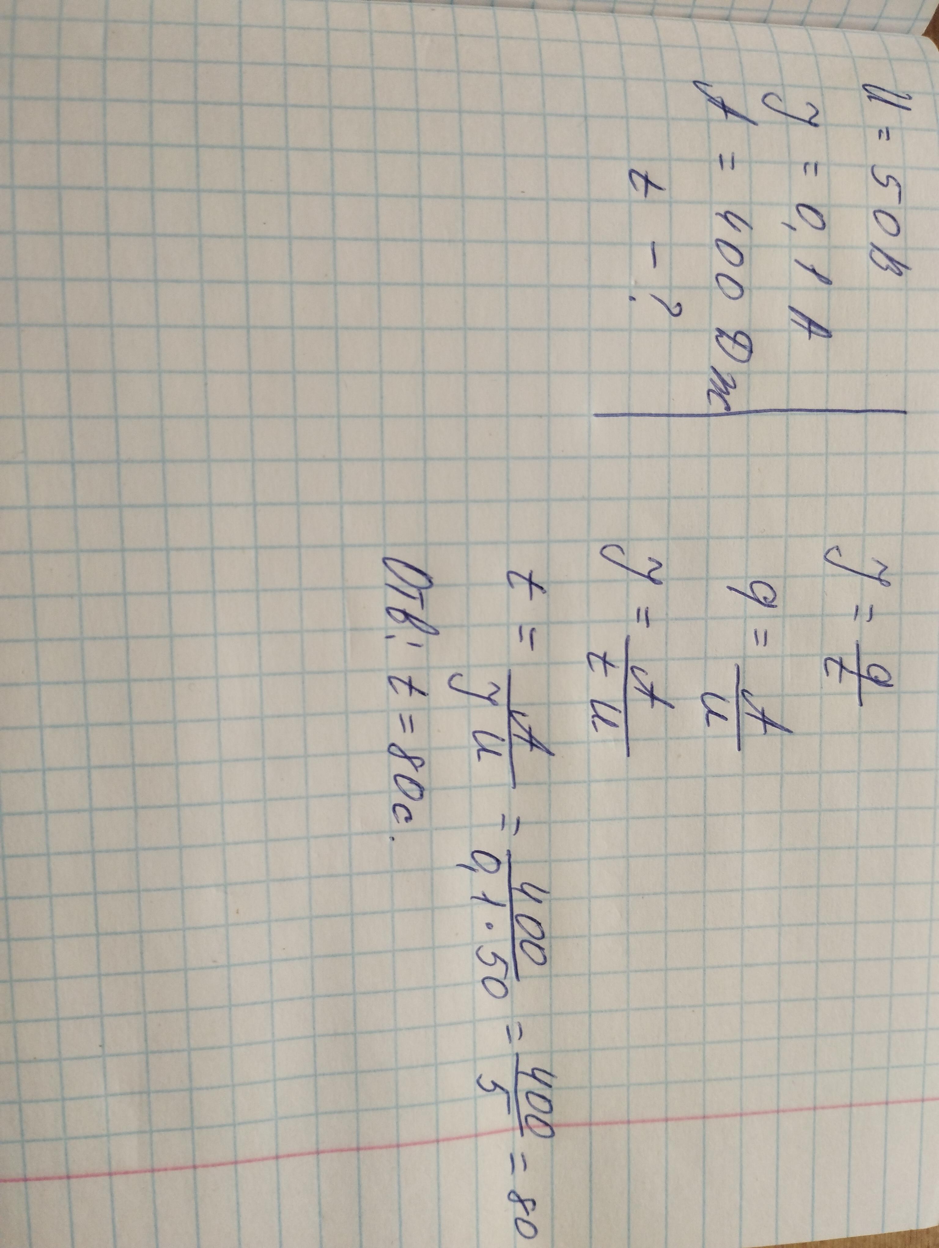 Работа, совершаемая цепи электрическим током за 2 мин, равна 240 Дж. Какова сила тока в этой цепи, если напряжение на ее концах 20 В?
