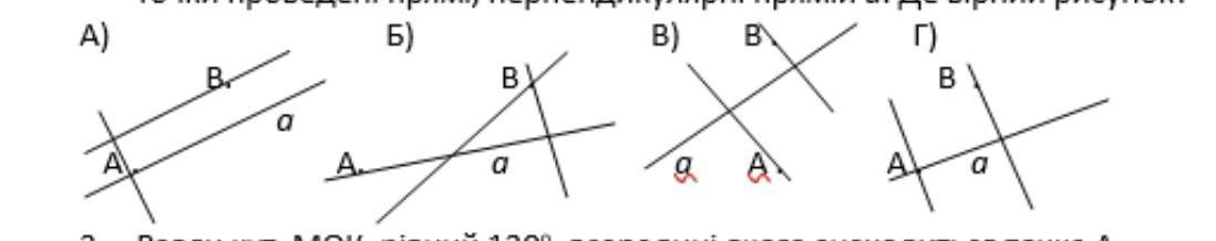 Точки А належить прямій а, точка В не належить прямій а. Через точки проведені прямі, перпендикулярні прямій а. Де вірний рисунок? Фото прикріплено,50 балів!