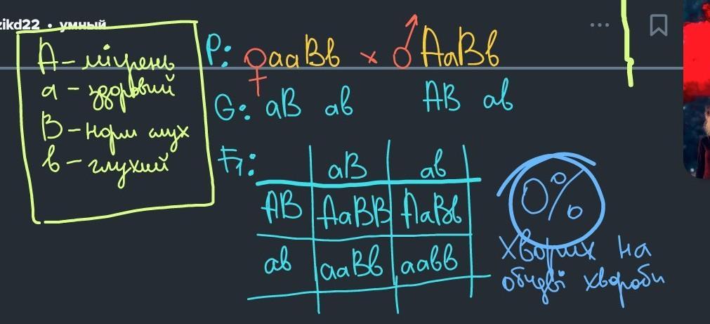 Батько хворіє на мігрень (домінантна ознака), а мати здорова. У батька нормальний слух, у матері також, але вона має рецесивну алель глухоти. Яка ймовірність народження у них дитини з обома хворобами, якщо батько гетерозиготний за обома генами?