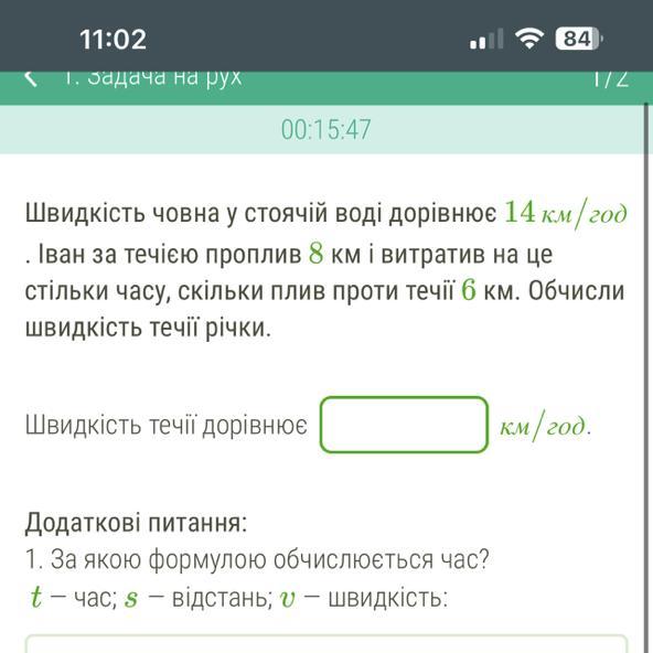 14 * t = 8 + V * t (при плаванні зі струмом)