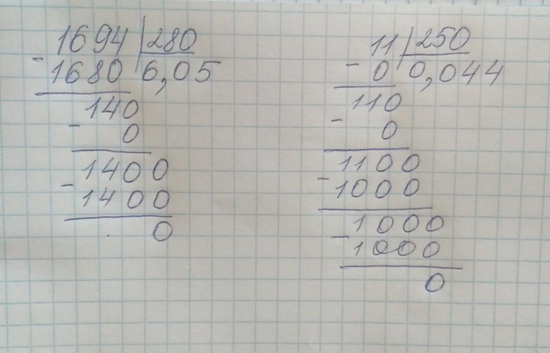 16,94 : 2,8 = 1694 : 280 = 6,05